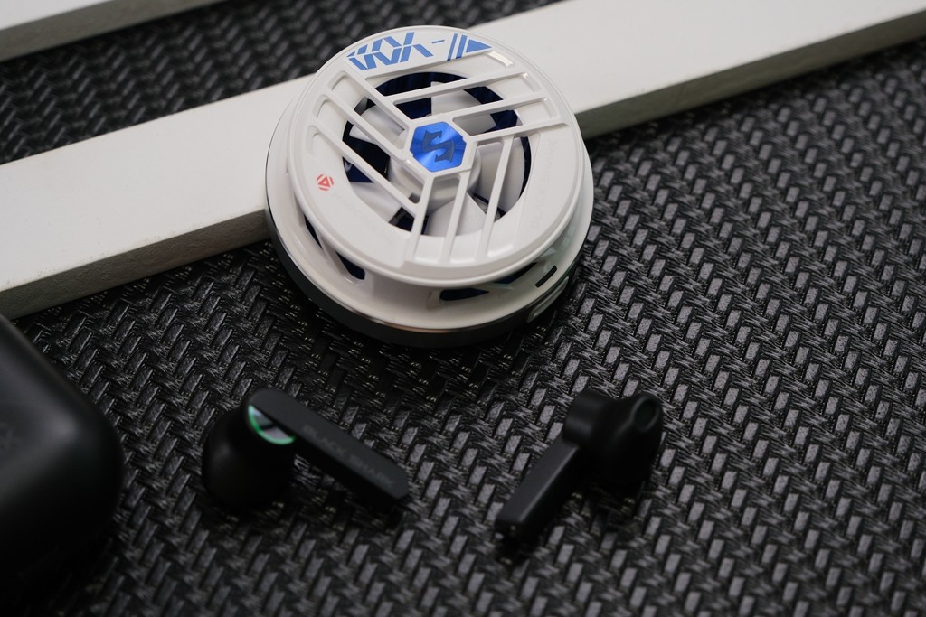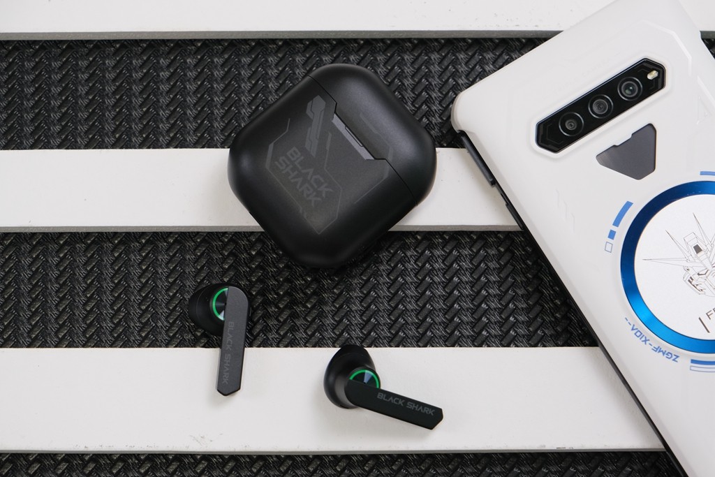 视听体验聊到这里,而本段落主要跟大家分享的提升设计就是外设方面的补齐了。除了高达手机壳之外,黑鲨在此次新品发布之中,还带来了黑鲨凤鸣真无线蓝牙耳机,也是值得跟大家细致分享的游戏配件了。